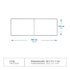 Guy ropes & hooks (6 pieces): 30 g.Compact cover: 1.5 litres.Dimensions 15 cm x Ø 10 cm.