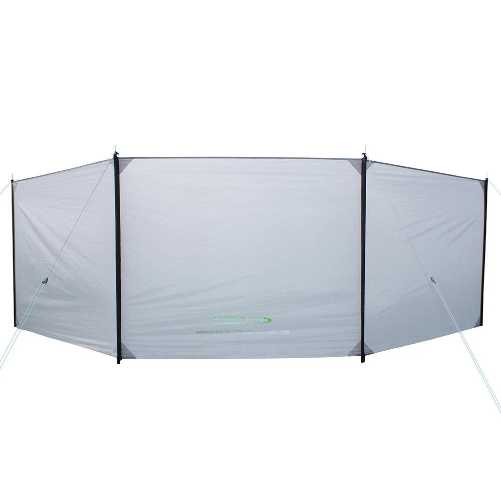 The three-poled Breeze-Lite 3 Windbreak is a great addition to our windbreak collection. Using a combination of 4 upright steel poles and a series of guy ropes, it is designed to complement the latest ranges of Cayman, Camp Star, and Screenhouse with its contemporary colourway. This accessory measures 4.5m wide and 1.2m tall, providing excellent protection against the wind so that you can kick back and relax – in any weather! • 120HDE high density all weather lightweight fabric