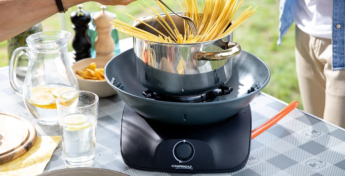 Introducing the very first table-top style gas grill with a flat design that can be grilled on from 360° while comfortably sitting at the table. The Campingaz 360 Grill offers extensive grilling and cooking versatility with an included ribbed griddle, flat plancha as well as a pan support for stove cooking. The practical grill comes completely pre-assembled and the attractive, yet simple design ensures it will harmoniously integrate into both close to home urban settings as well as on any camping adventure. Light, compact and convenient to take along with you wherever the road takes you.
