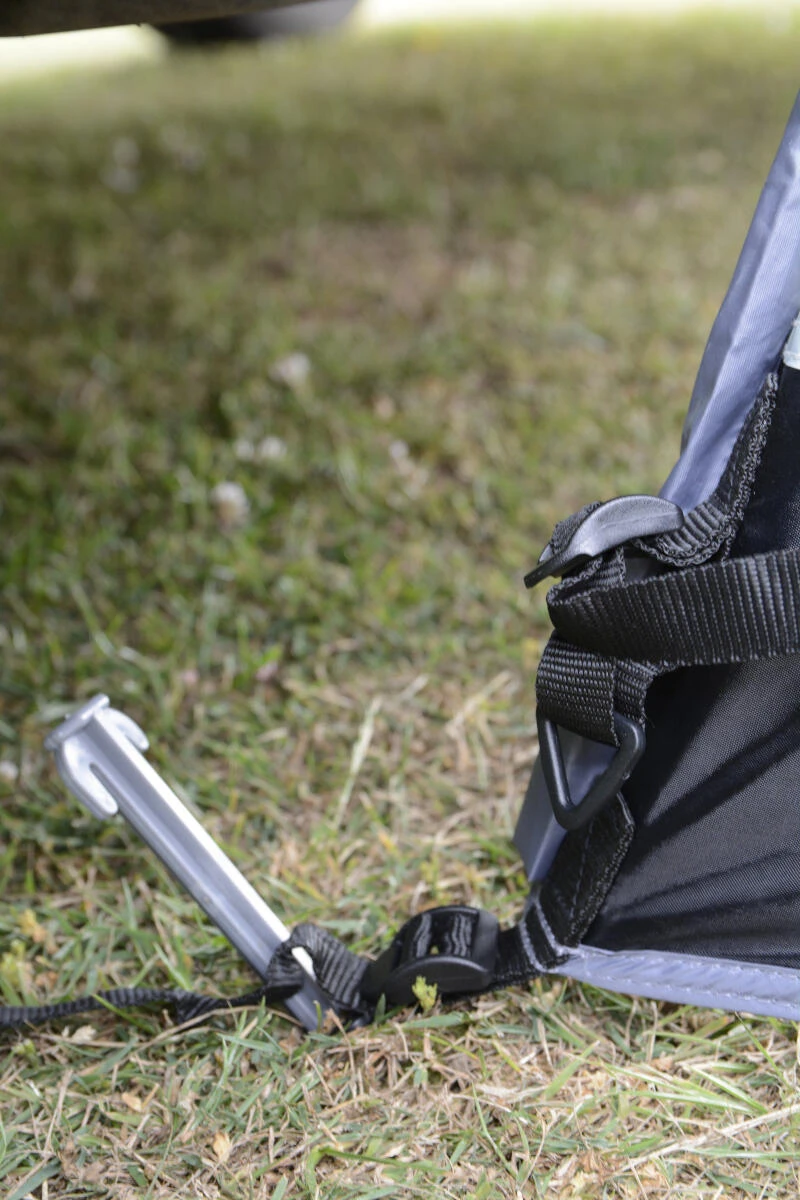 The Trip guarantees a fast set-up and take-down, even when touring solo. Packed with features including a clip-in waterproof groundsheet, two full-height windows with roll down blinds and a large roll-to-side front door. The connecting tunnel has a convenient side door for easy access. Fibreglass and Air Frame models are available.