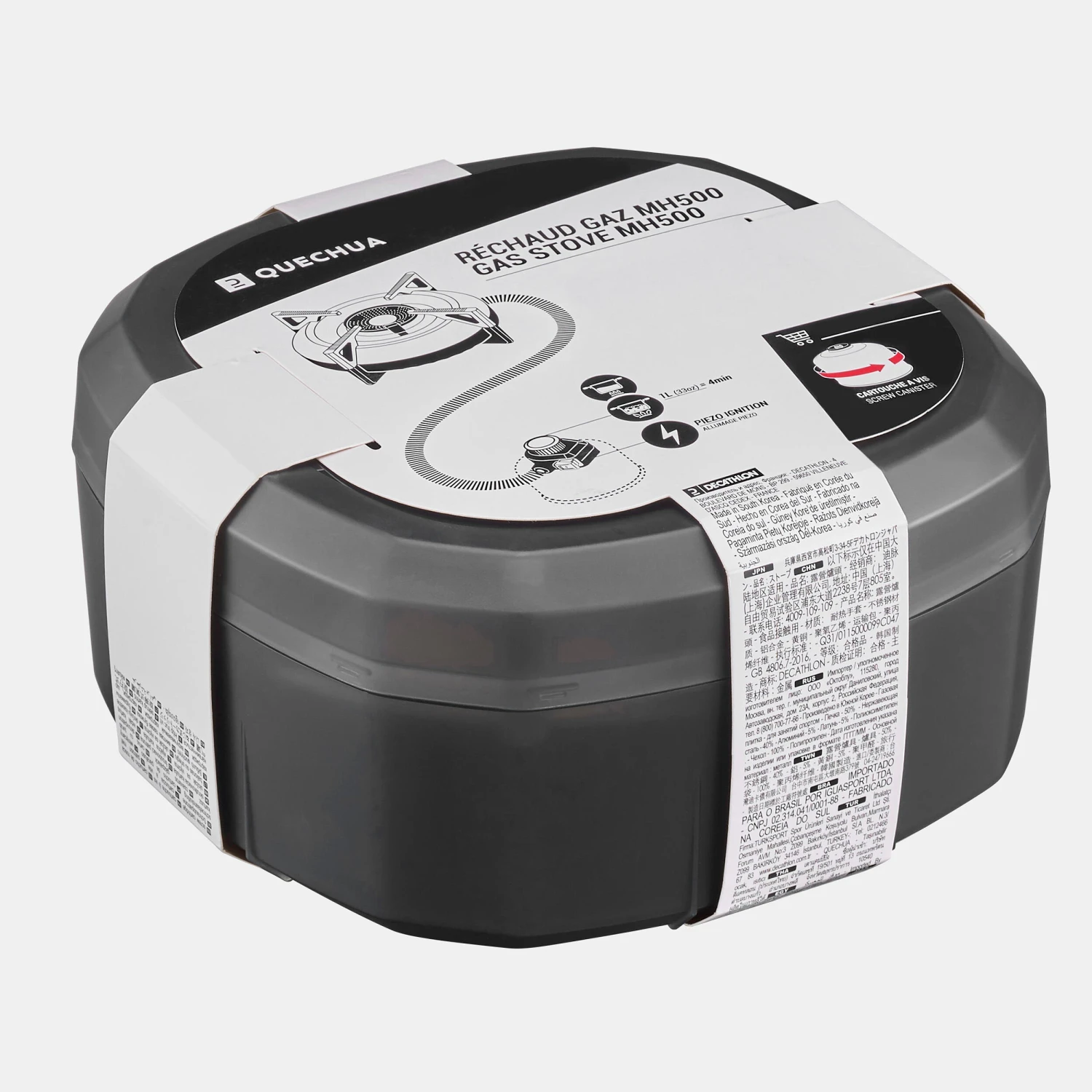 Store the product in its case for transportation or insert it directly into a Quechua MH100 or MH500 – 4P cooking pot!